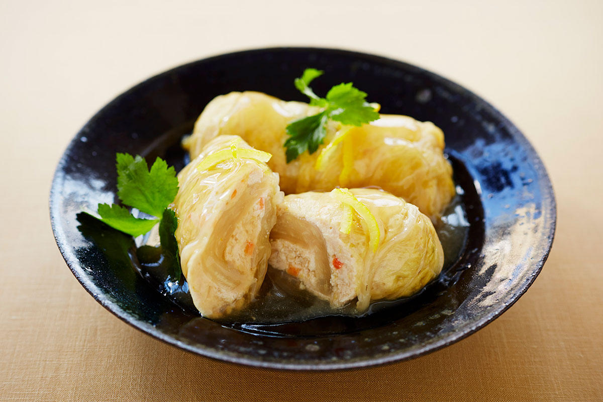 霜降り白菜と鶏肉、野菜を合わせた優しい味わい。