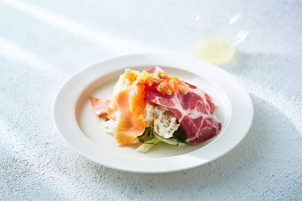 生ハムと青森サーモンの華やぎサラダ