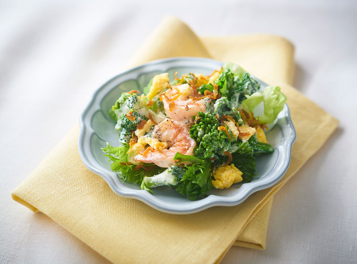 菜の花と海老のカリじゃこのサラダ