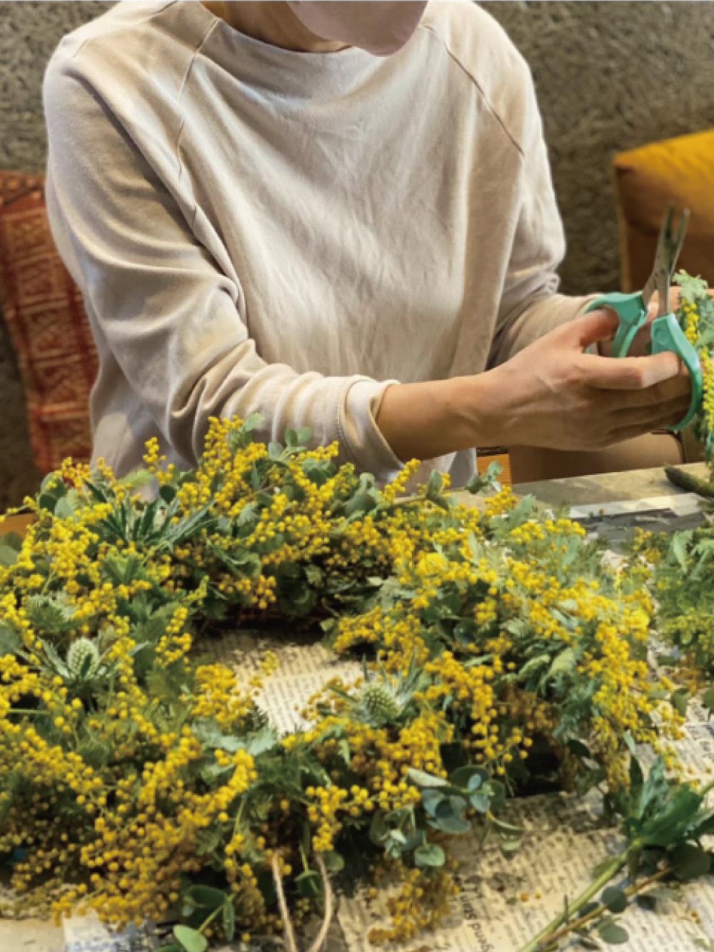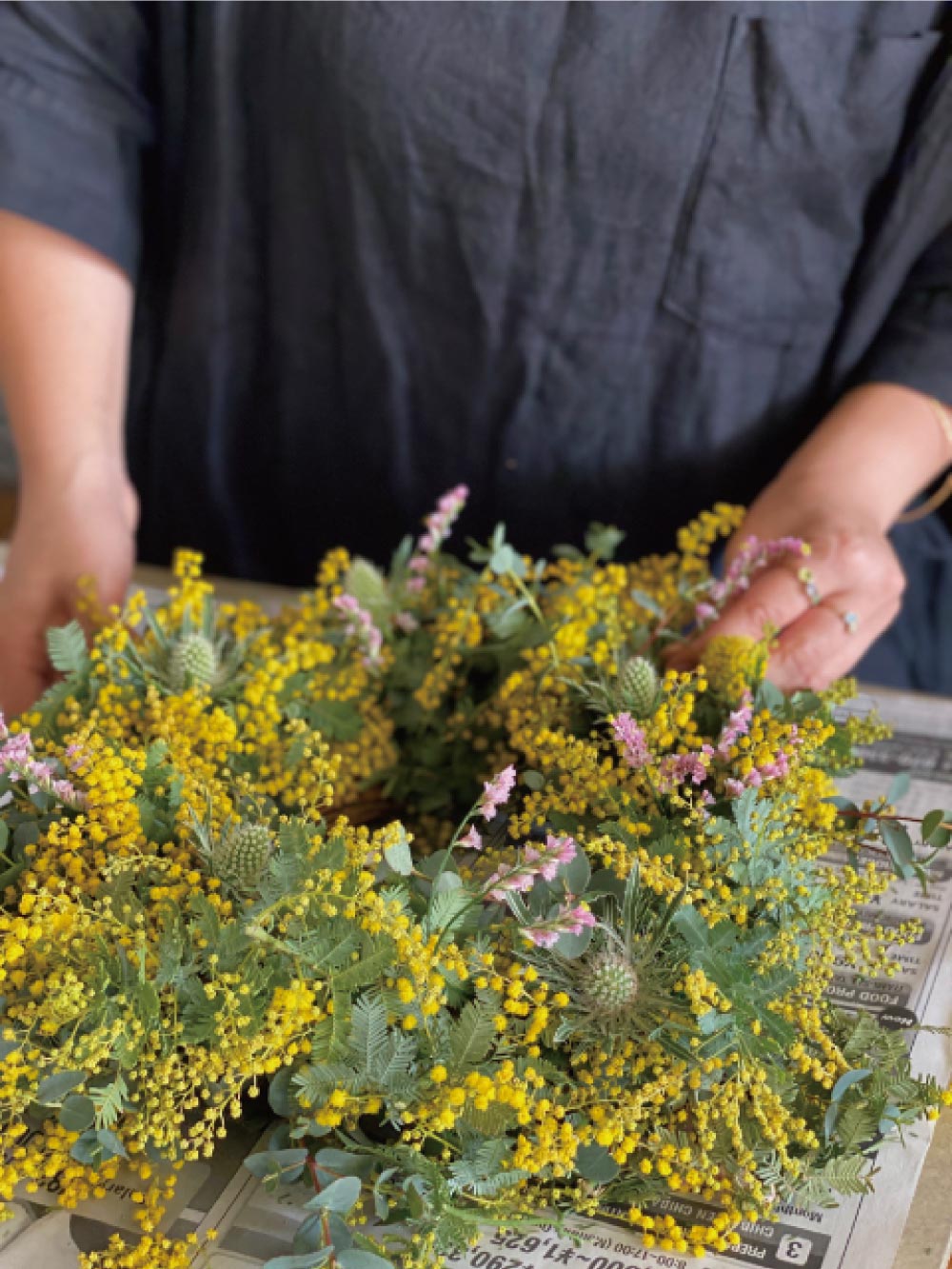 〜3.8 国際女性デー ミモザの日〜 春の花ミモザを束ねる インテリアリース作り