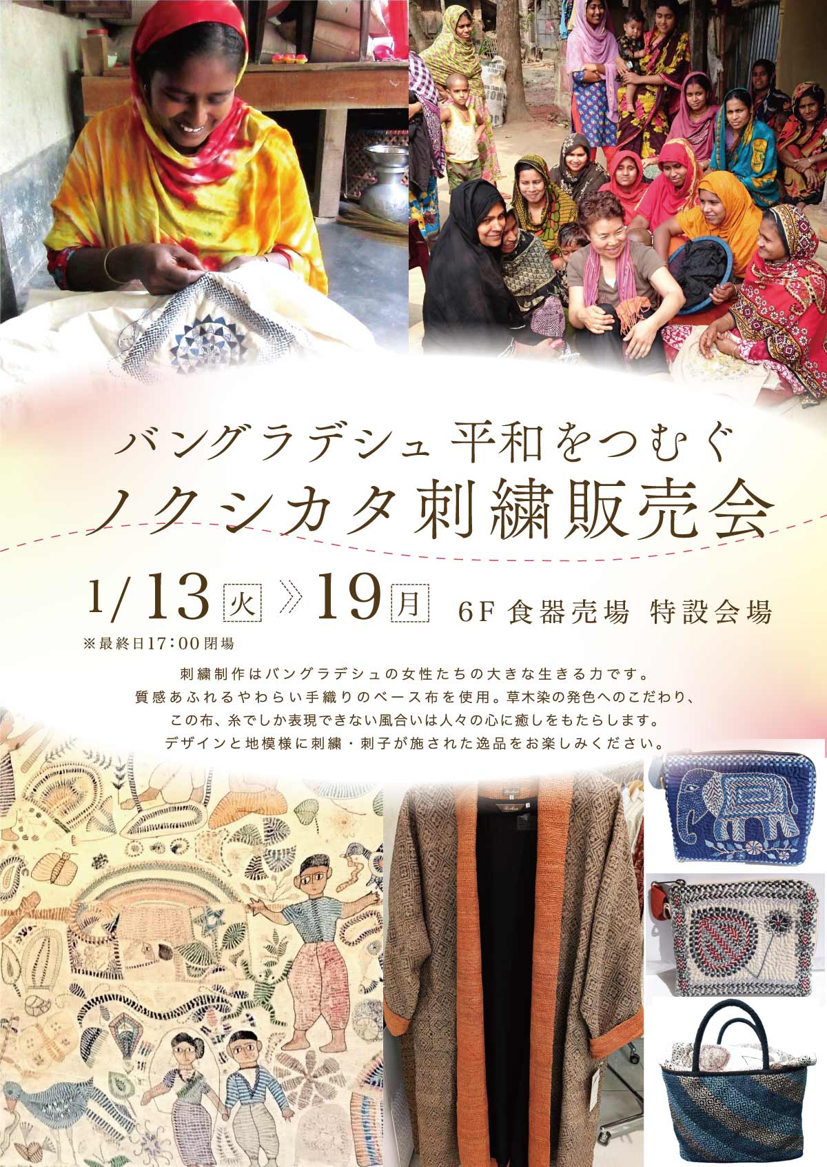 バングラデシュ 平和をつむぐ ノクシカタ刺繍販売会