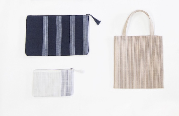 手織りの落ち着いた絣模様を用いた、
