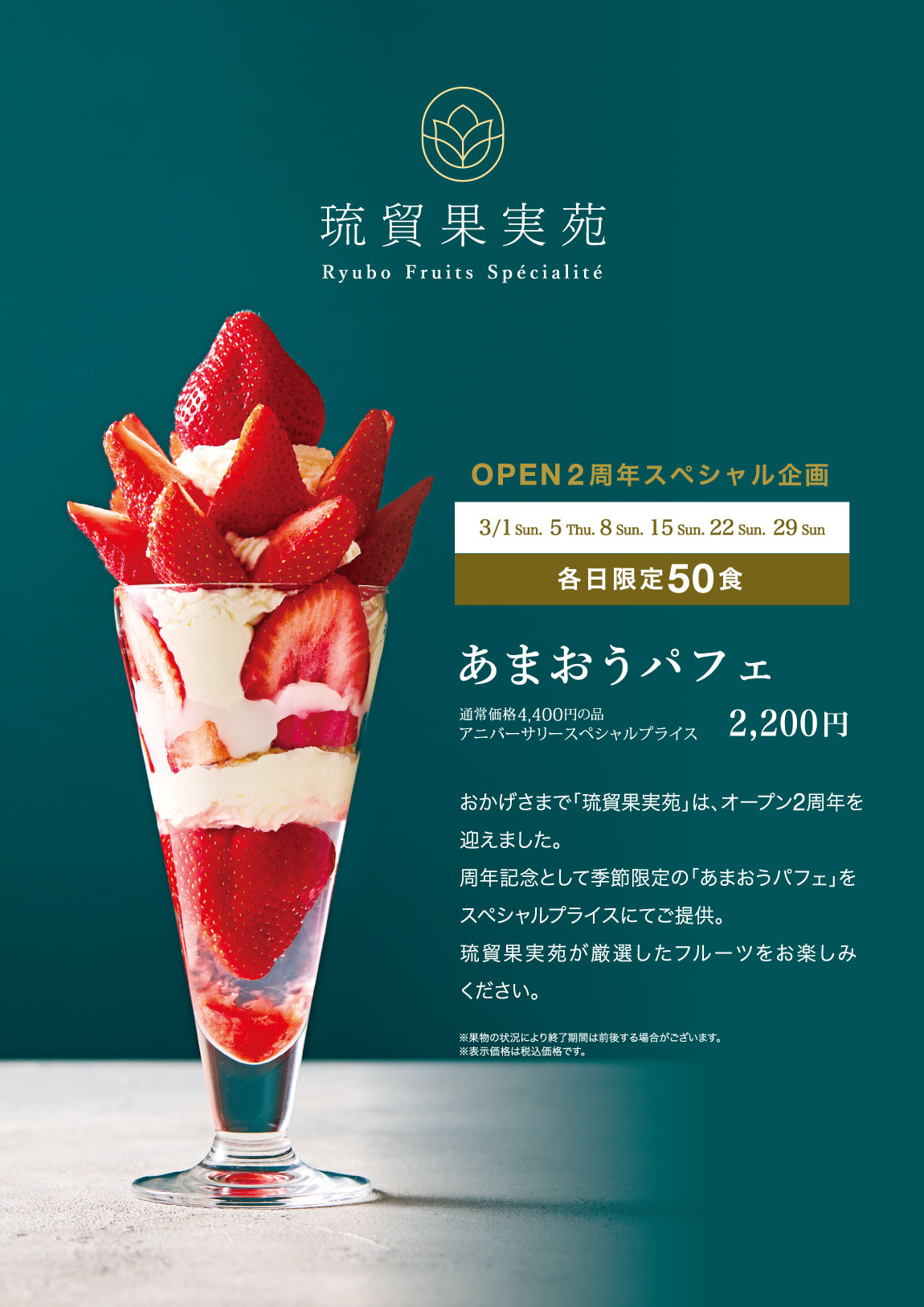 周年記念として季節限定の「あまおうパフェ」を
