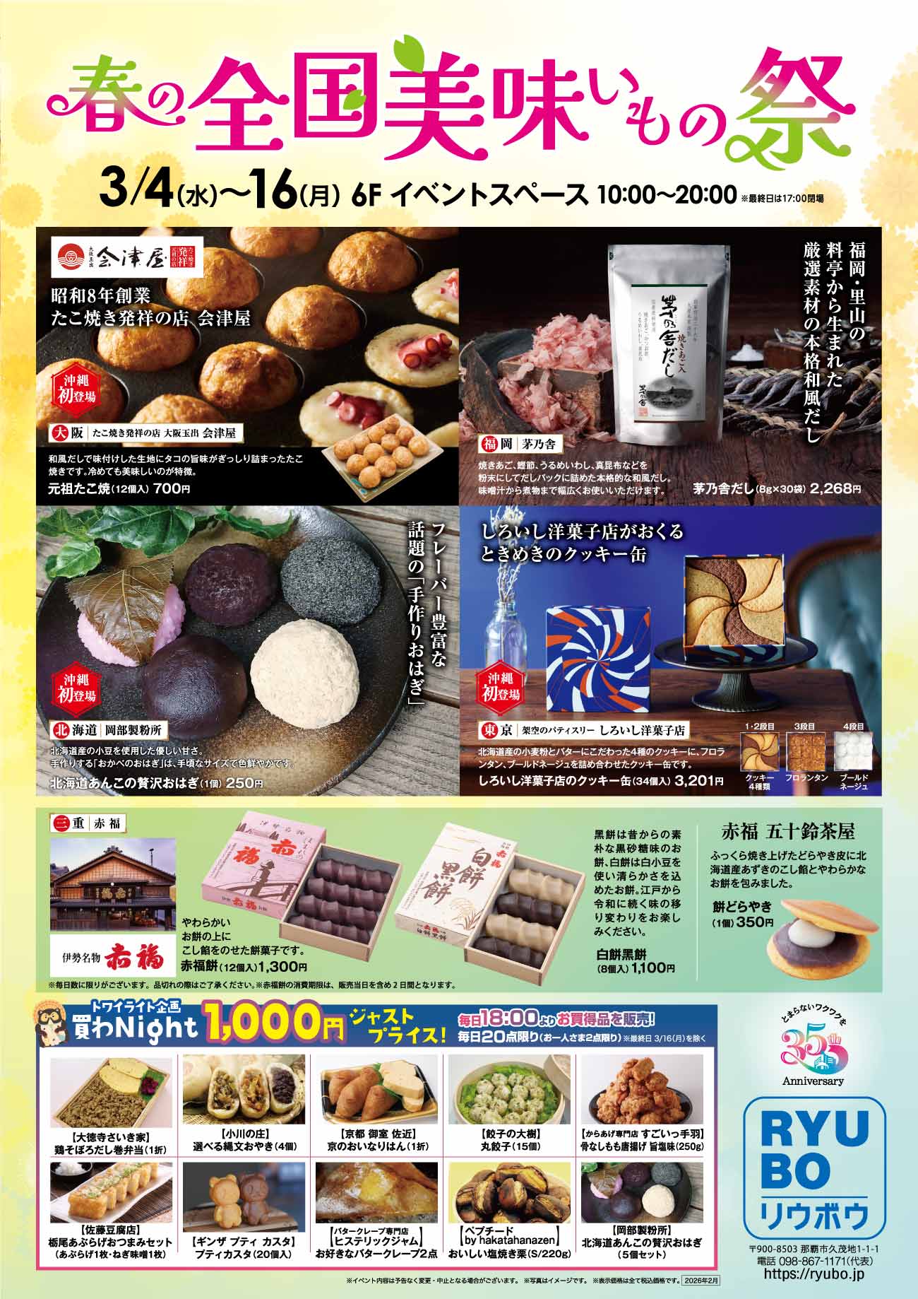 - 春の全国美味いもの祭date-between : 3/4(水)〜16(月)floor : 6F イベントスペース