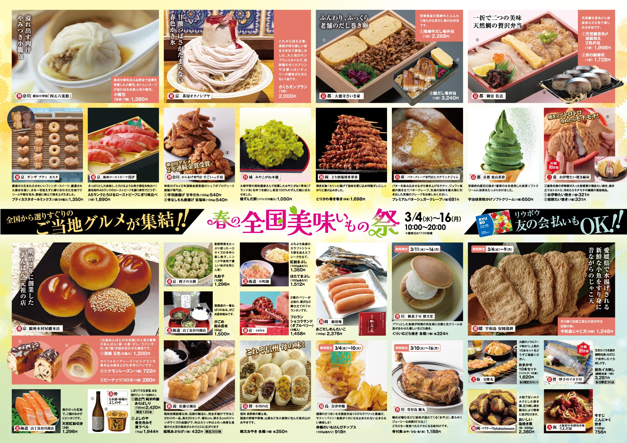 - 春の全国美味いもの祭date-between : 3/4(水)〜16(月)floor : 6F イベントスペース